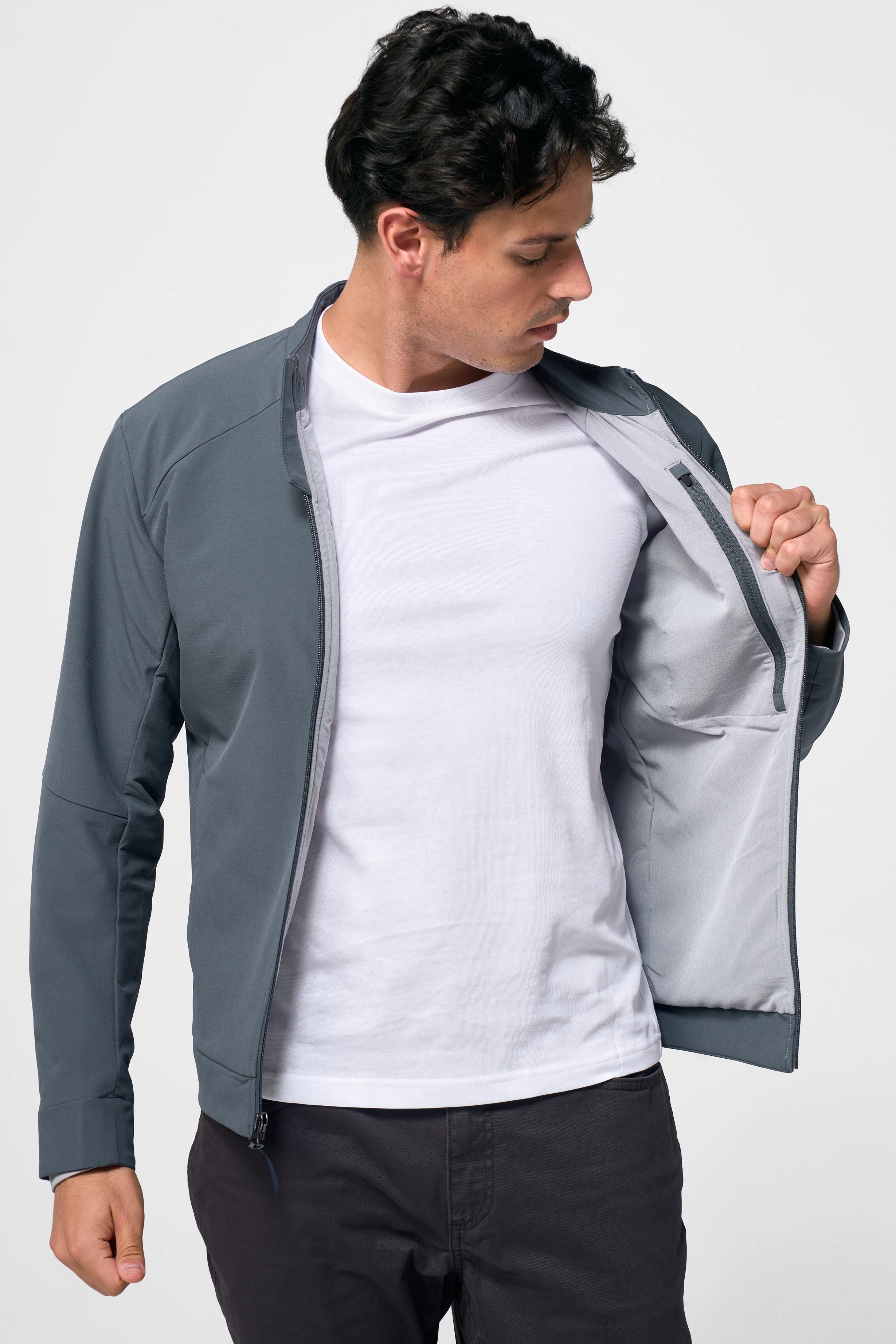 The Itinerant Jacket is a versatile insulated jacket designed for 25°–55°F, with body-mapped SOLARCORE® insulation, breathable wind resistance, and a sleek style. Perfect for commuting, city life, or weekend hikes.